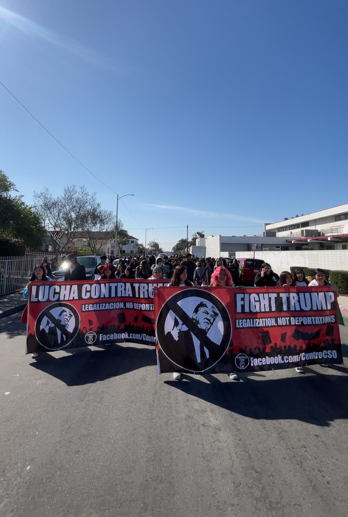 Los Angeles, CA – Chicano high school students took to the streets, February 20, to protest Trump's ICE raids, arrests, and deportations. All over the city, LAUSD students walked out of school chanting “Stop Donald Trump” and “Raza si, migra no.”