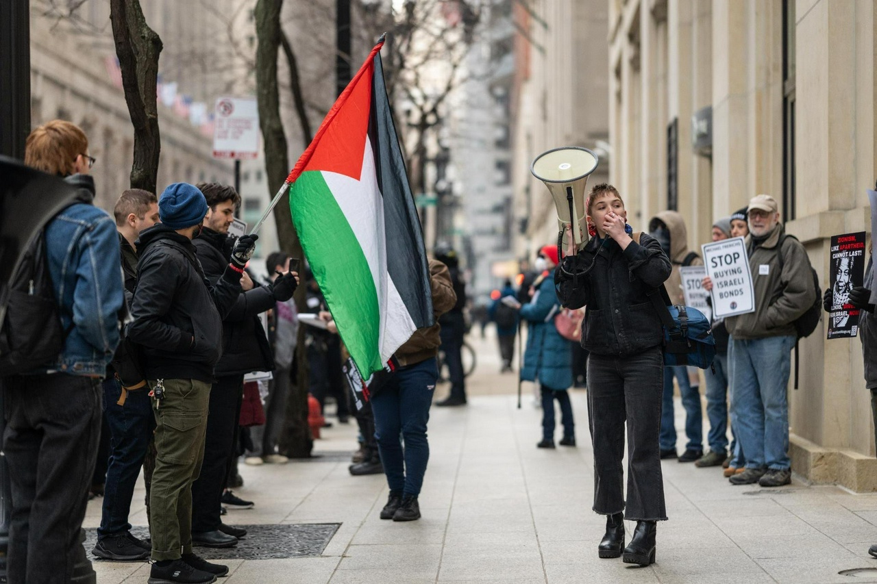 Chicago, IL – On Friday morning, March 21, over 50 protesters gathered outside the Illinois State Board of Investments (ISBI) office in downtown Chicago. They came to demand that ISBI and Vice Chair Michael Frerichs, who currently sits as the Illinois state treasurer, divest from Israeli genocide, apartheid and occupation.