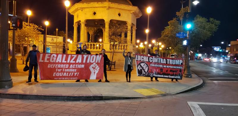Los Angeles, CA – The evening of February 22, a group of fiery protestors gathered at Mariachi Plaza in Boyle Heights, protesting Trump’s deceleration of a National Emergency for his wall. The Boyle Heights action was organized by Centro CSO and was one of the protests in response to a call to action made by the Legalization for All Network.