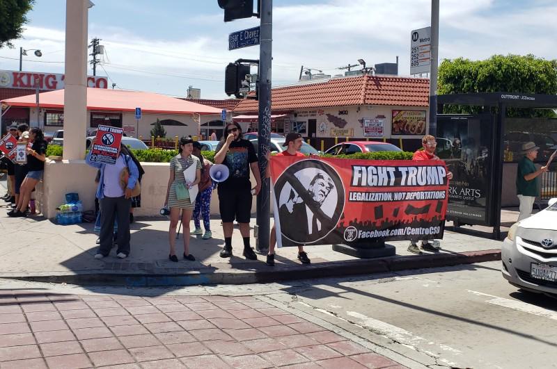 Los Angeles, CA – A protest on June 29, at the busy intersection of Soto Street and César E. Chávez in Boyle Heights, demanded an end to ICE raids and deportations. Attended by 30 people, the participants included students, parents and Centro CSO. The protest was energetic and extremely well-received by locals, people driving by, public transportation bus drivers and everyone in between.