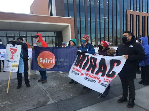 Elk River, MN – On the morning of March 8, around 50 people gathered at the Sherburne County Sheriff’s Office to demand that the county cut ties with Immigration and Customs Enforcement (ICE). The rally was organized by Sanctuary and Resistance to Injustice (SARI) and was supported by Interfaith Coalition on Immigration (ICOM), the Minnesota Immigrant Rights Action Committee (MIRAC), Filipinx for Immigrant Rights and Racial Justice Minnesota (FIRM), and various other groups who were all in attendance.