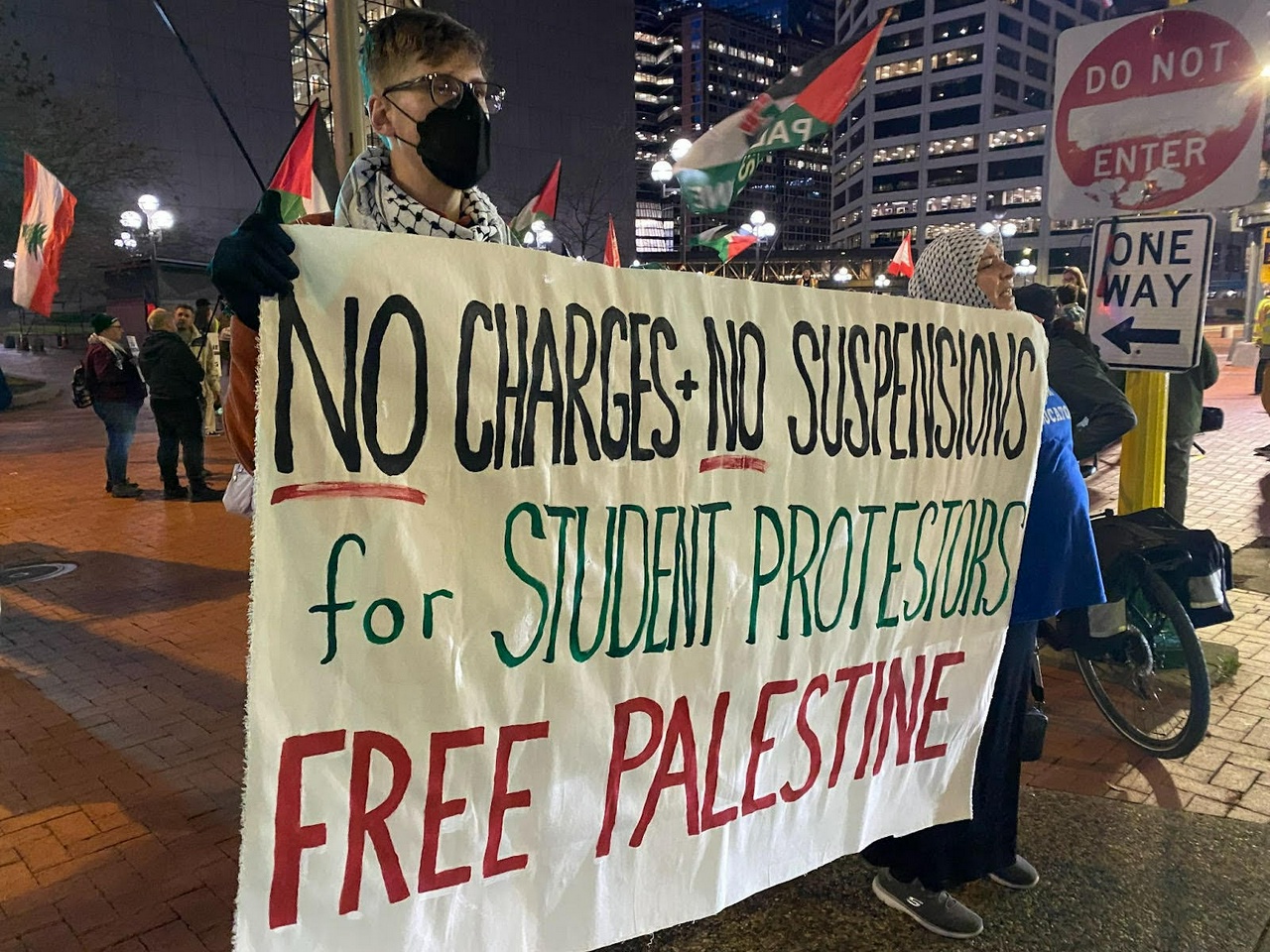 Minneapolis, MN – On November 8, the Twin Cities-based Free Palestine Coalition rallied outside Hennepin County Government Center in support of student arrestees who face both university disciplinary action and potential criminal charges for protest action.