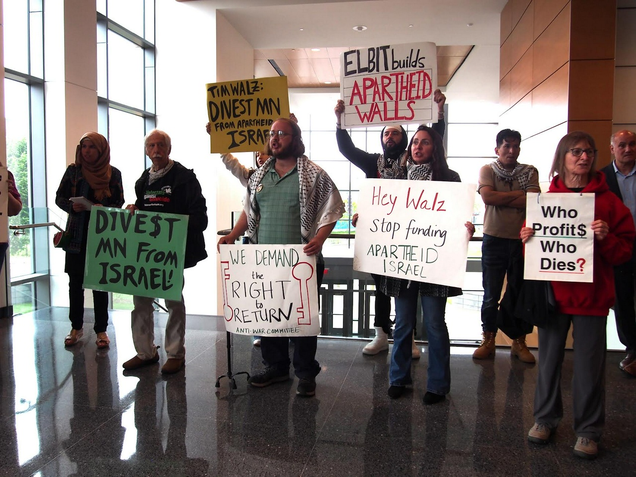 St Paul, MN – On May 21, the Minnesota State Board of Investments (SBI) held its second quarterly meeting of 2024. The meeting began with an extensive discussion on “ethical investments” related to green energy and combating the ongoing climate crisis. What was not brought up by board of investors was how much Minnesota annually invests in companies and shareholdings connected with the ongoing genocide in Palestine.