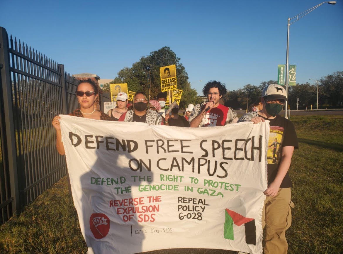 Tampa, FL – On March 12, Tampa Bay’s Students for a Democratic Society led a protest to demand the release of Mahmoud Khalil, who is under the threat of deportation as the U.S. pushes to revoke his green card.
