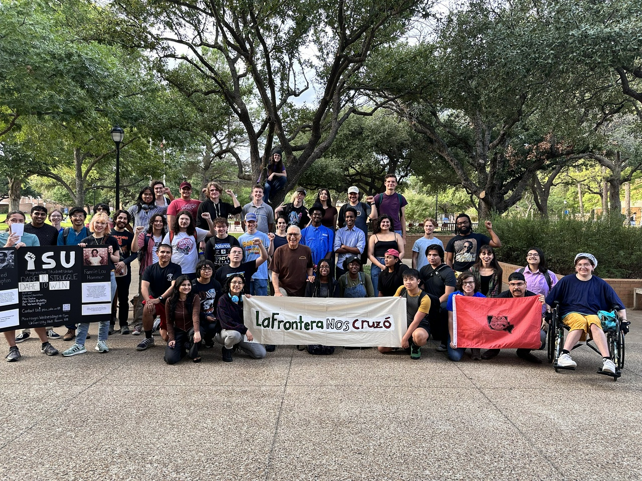 Arlington TX – On October 4, the Progressive Student Union (PSU) at University of Texas-Arlington hosted the longtime Chicano activist and co-founder of the Brown Berets, Carlos Montes. He arrived the day before as part of his speaking tour across Texas. Montes spoke to local organizers and activists about the Chicano national movement and how to build mass struggle.